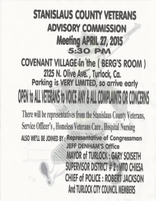 Stanislaus County Veterans Advisory Commission Meeting @ 5 pm.