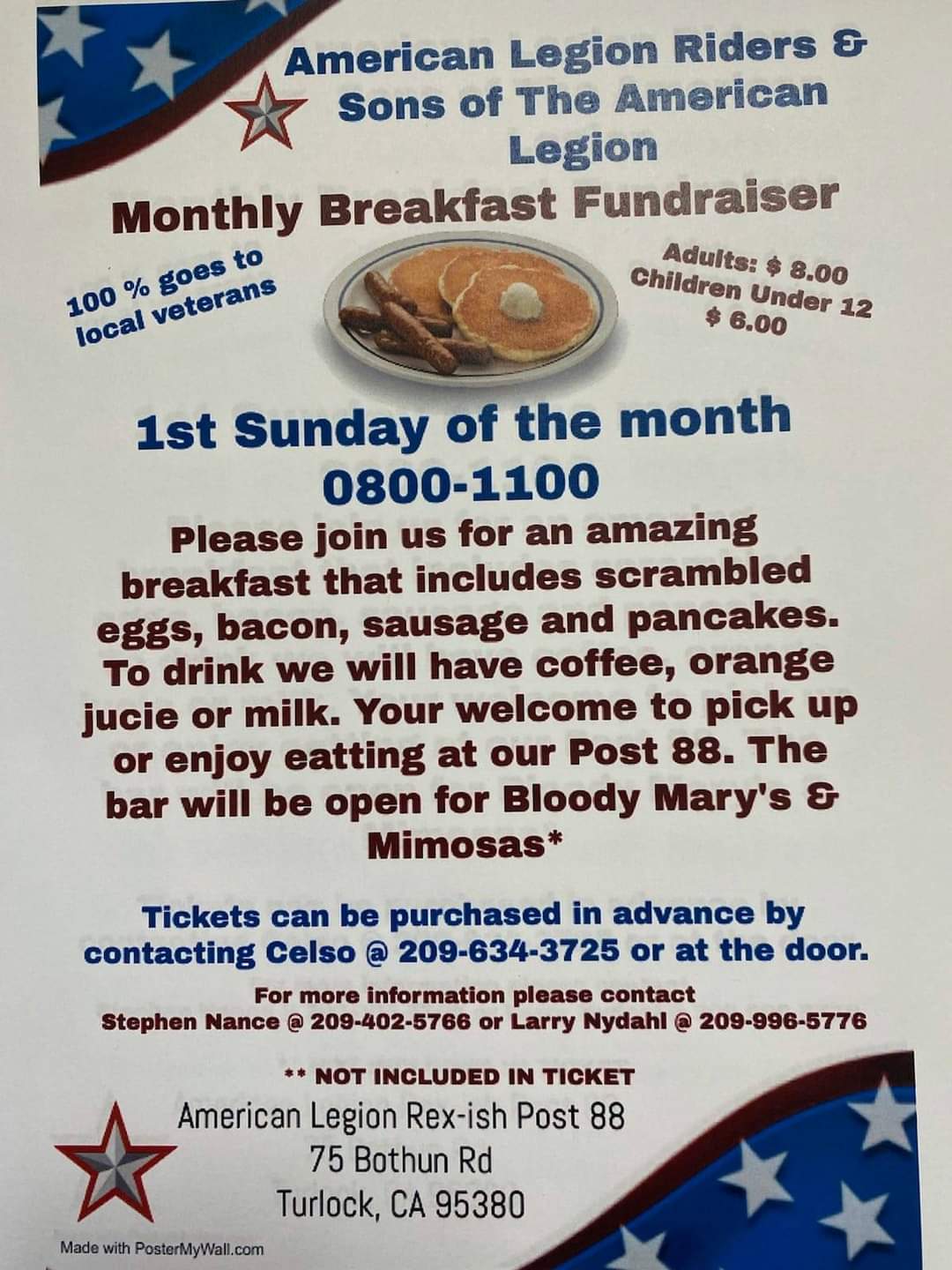 Friday, November 19 hamburger night put on by American legion riders and sons of the American Legion 6-8pm 75 Bothun Turlock,Ca
