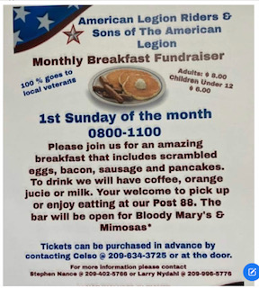Tuesday, April 12th @ 6 pm is the next Sons of the American Legion Meeting, followed by the American Legion Riders Meeting @ 7 pm.