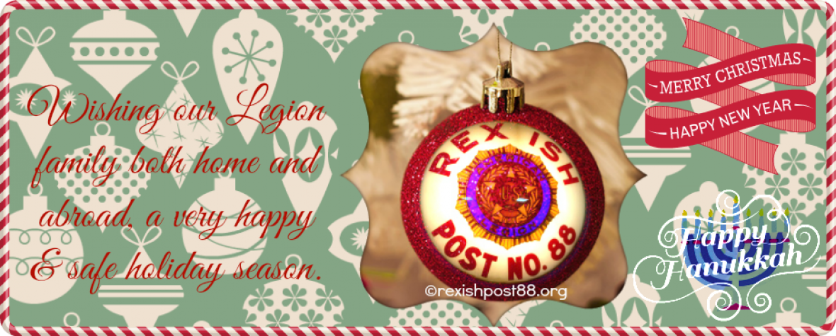 The American Legion Post88 will be closed from Wednesday, December 22 to Monday, January 3rd.