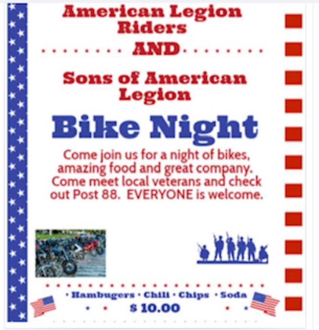 Tuesday, September 14th @ 6 pm is the next Sons of the American Legion Meeting, followed by the American Legion Riders Meeting @ 7 pm.